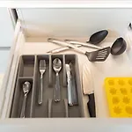 يوجد أيضًا المطبخ المجهز بالكامل المزود بجميع أدوات المطبخ الضرورية.